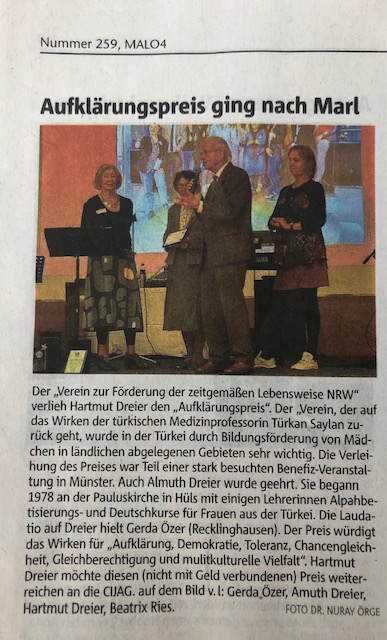 Aufklärungspreis 2023 des „Vereins zur Förderung der zeitgemäßen Lebensweise“ NRW, in Münster am 28.Oktober 2023